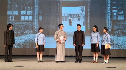 以协进校友为原型创作的红色话剧《上延安》拉开了帷幕。该剧讲述了“红色学校”协进中学从成都少城迁至新繁县龙藏寺后,学生党员冷芳芳和吴红霞为寻求抗日救亡道路决心奔赴延安的故事。
