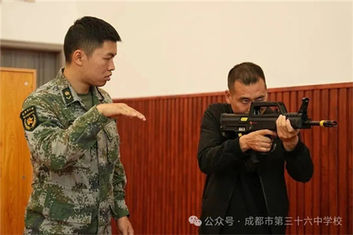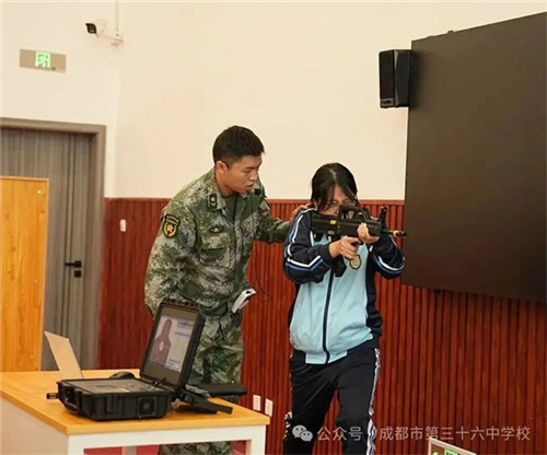 在成都三十六中的国防教室里,一堂《射击与匍匐》国防课精彩开讲。课程打破“理论灌输”模式,以“理论讲解+实践体验”双线并行:从枪械构造的细节剖析,到射击姿势、瞄准技巧的专业指导,再到学生们轮流持模拟枪进行实操体验,每一个环节都充满沉浸式学习的魅力。“国防课原来这么有意思!”同学们难掩兴奋,纷纷表示这堂国防课不仅有趣味,更让自己真切感受到了国防力量的厚重,爱国情怀与责任担当在实践中悄然扎根。
