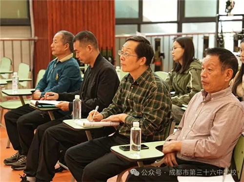 活动在成都三十六中体育馆国防教室及三楼会议室举行,来自两校的领导、国防教育骨干教师、省级科研课题组成员共同出席了本次活动。