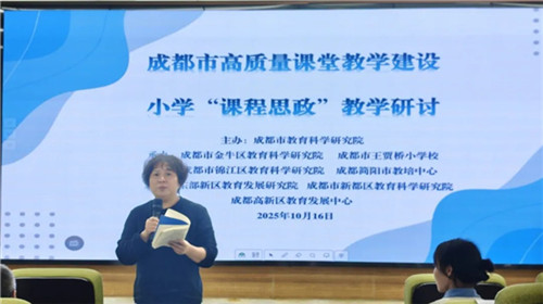 2025年10月16日上午,由成都市教育科学研究院主办,金牛区教育科学研究院与成都市王贾桥小学校联合承办,锦江区教育科学研究院、简阳市教培中心等多区(市)县教研单位协办的2025年成都市小学道德与法治教研活动,在成都市王贾桥小学校成功举行。
