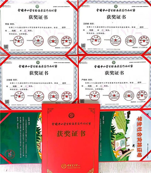 近日,在第二十九届全国中小学生绘画书法大赛中,成都市三原外国语学校初三11班王紫睿获一等奖,初三11班王新睿获二等奖,初二9班严晓冉获二等奖,初三5班李苗获三等奖。