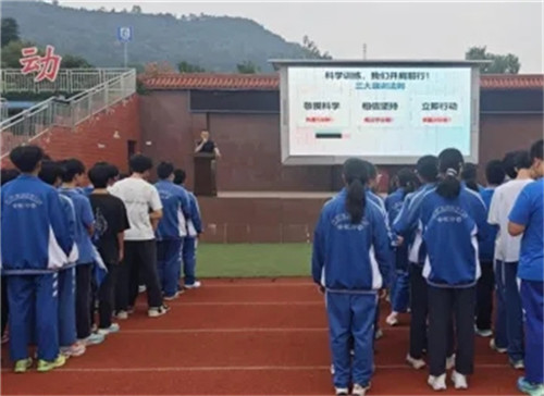 艺体组教研组长毛麒先挥旗发布“黄金三条令”:科学为盾,热身不到位,等同主动负伤!坚持为弹,完成大于完美,持续即胜利!团队为垒,拉起倒下的战友,全班不落一人!