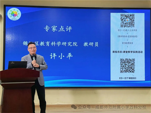 最后,教研员许老师对本次活动进行点评。他首先肯定了左楷老师的课堂是一节“真实”“高效”“有思考力”“有人情味”的数学课堂,呈现了师生和谐共生、教学相长的完美状态。高度肯定本次活动贴合新课标要求,认为单元整体设计与核心素养培养深度融合,课堂实践与理论汇报相互支撑,为锦江区高段数学教师开展单元教学提供了切实可行的参考,同时鼓励教师们持续探索“教学评一体化”落地方式。(江蕾 谭坤银 王佳)