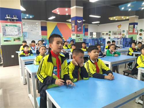 刘洁展示遥控器和FPV飞行眼镜,现场演示“飞手视角”,同时将飞手的FPV实时画面投放到平板电脑上,让所有学生同步感受“飞手视角”的刺激。无人机飞出创客活动室,在校园的楼宇间穿行。孩子们看着精彩绝伦的壮观场面,发出喝彩和惊呼声。