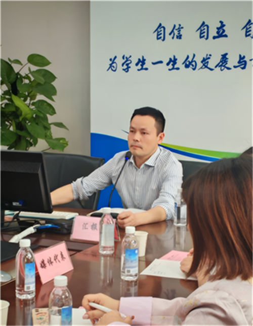 随后,后勤服务中心副主任叶勇围绕校园餐的食材管理、营养搭配、安全保障及反馈机制作汇报;安全交流中心副主任易仕勇介绍学校“预防为主、干预及时”的防欺凌工作体系;教师发展中心主任助理蒋亚兰讲解心理健康三级干预模式与生涯教育实践举措;蒋德明从办学理念、师资建设、课程特色及办学成果等方面,简要介绍学校整体情况。