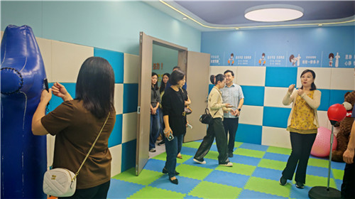 首先,参会嘉宾实地参观了校园、食堂后厨与心理健康教育中心,通过“零距离”接触,让代表们直观了解学校校园布局,后勤保障细节与学生心理健康关怀硬件设施及服务机制。