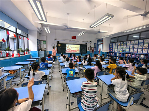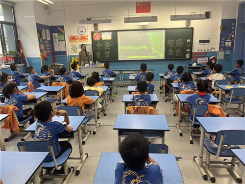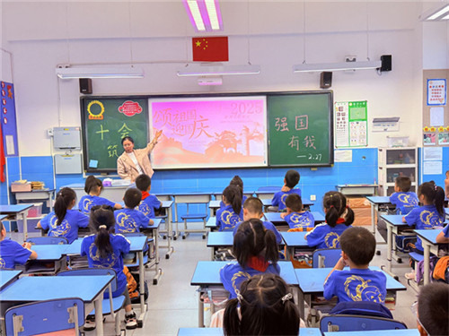 主题班会上,精美的PPT画卷徐徐展开,“1949-2025”的数字长廊,镌刻着共和国光辉的岁月印记;“山河锦绣”的壮美图景,描绘着神州大地的盛世容颜;“举国同庆”的欢腾场面,点燃了每个孩子心中的爱国热情。老师们深情讲述祖祖辈辈的牺牲奉献,将“国庆为什么要放假”的缘由,化作一粒粒爱国主义的种子,深深植根于孩子们的心田。