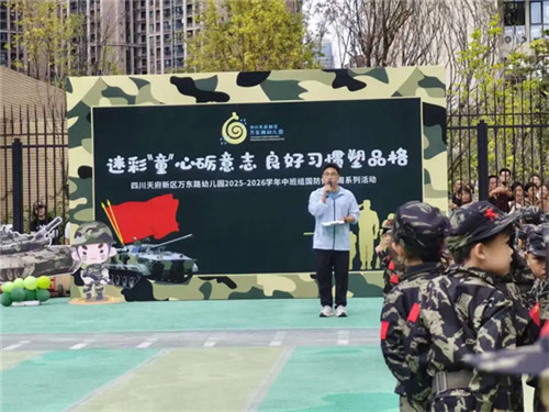 此次活动以“迷彩‘童’心砺意志,良好习惯塑品格”为主题,全体中班师生与英姿飒爽的教官们齐聚一堂。教学中心曾棋老师在开营讲话中对孩子们寄予厚望,希望孩子们能在此次活动中感受国防魅力,磨砺坚强意志,并将好习惯带回日常学习生活中。