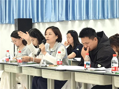 专家点评结束后,活动进入片区科研骨干互动研讨环节。在曹艳老师的引导下,来自片区各学校的教师代表结合自身教学实践,围绕课题展开深度交流:有的老师分享了在古诗教学中运用“实物场景+联想引导”创设情境的经验,有的老师探讨了“虚实共生”理念在科学、体育等学科的迁移应用可能,还有老师针对“不同学段情境创设的梯度设计”提出思考。