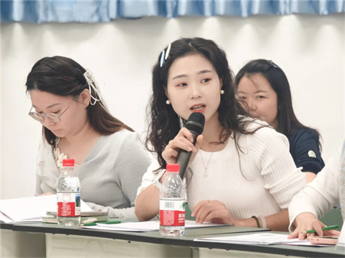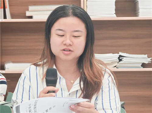 课题组成员寇鑫老师随后进行开题汇报。她围绕研究背景、核心目标、主要内容、实施方法及创新点展开详细阐述,重点分享了课题“以虚实情境融合提升学生文学鉴赏能力”的核心思路,从文本解读、情境设计、能力测评等维度,清晰呈现了课题的研究框架与实践路径,展现出课题组扎实的前期准备与清晰的研究规划。