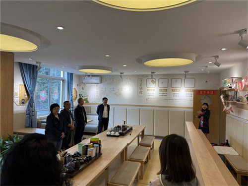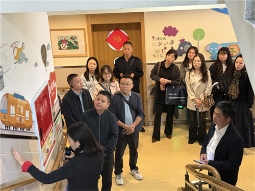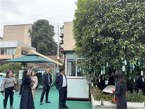 活动伊始,成华特校校园内洋溢着热烈而温暖的氛围。成华特校党支部副书记、副校长覃佳利和副校长李为苇带领四校同仁们深入参观校园,切实感受成华特校模拟小城市空间体验文化。沿着校园的道路前行,来宾们参观了城市环形互动游戏区、心愿树、特教赋等特色区域。每一处景观都蕴含着学校“让生活走进课堂・让学生走向社会”的育人理念。在模拟超市、银行、家居馆等功能室,体会了特殊学生在模拟生活场景中学习生活技能的过程。来宾们不禁感慨道,成华特校占地面积虽小,但是每一个角落都充满了教育的智慧,为特殊学生创造了真实而丰富的学习环境。