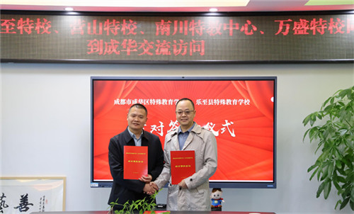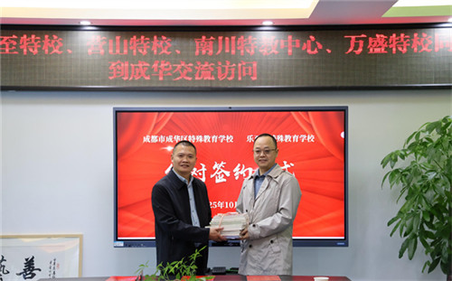 为贯彻落实省委“一干多支”发展战略与区域协调发展部署,推动特殊教育同城化发展,活动现场举行了成华特校与乐至特校教育教学帮扶协议签约仪式。此次签约不仅是两校友谊的坚实见证,更是双方携手推进特教资源共享、协同发展的重要举措。签约仪式后还同步开展了赠书环节,进一步丰富了两校教育教学资源交流的形式。