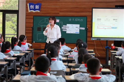 从教学目标和板块设计来看,袁天芳做了三层递进。第一层是识字基础,以帮笑笑认识车票为任务切入点,在提取车票信息的情境中认字,降低抽象识字难度,同时渗透生活即课堂的学习意识;第二层是AI科技赋能,通过AI引入乘务员姐姐的专业解读车票中的词汇,扫清障碍,帮助学生更好地理解“生字”含义,让识字有理有趣;第三层是旅途积累,孩子们在旅途中积累生活用语和经典名句。