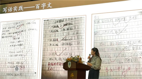 结合课例针对语文园地具体板块,赵丹还分享了天府二小语文教学中的识字写字、语言表达、“百字文”写作训练等方面的教学策略,这些可操作、重实效的建议,为参会教师提供了清晰思路与实践方向。