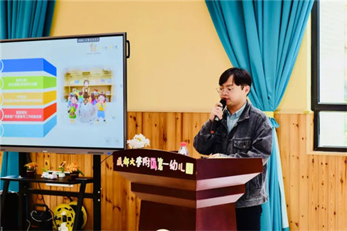 园长助理江俊超带来集团化办学经验分享,从“集团发展”维度,解析如何通过管理创新推动集团优质发展;青秀园园点负责人季薇聚焦《聚焦幼儿肢体表现力的幼儿园音乐活动的设计与实施》,结合具体教学案例,讲解如何在音乐活动中培养幼儿的艺术感知与表达能力;涂锐老师的《森林有灵从绘本到音乐剧的转变》案例,展现出艺术课程从雏形到成熟的进阶过程。