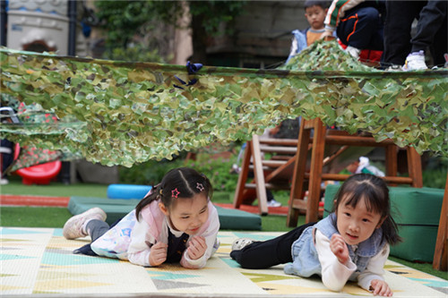 在野趣大循环中的“暗夜行动”更是让在场的教师们眼前一亮,两种运动色彩的鲜明对比,不仅是运动节奏的更新、新运动方式的开启,更是重现了生动的红色教育场景,让我们对那段艰难的岁月肃然起敬!