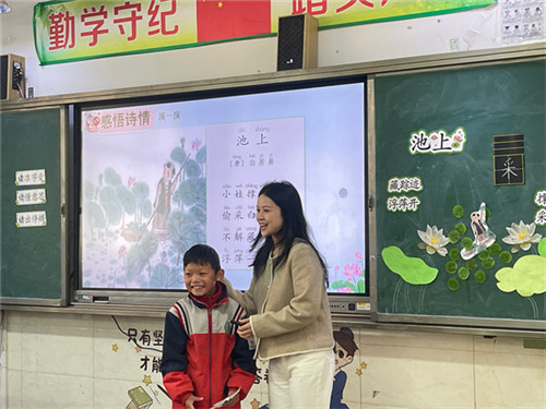 郑洪艳与杨凌深入阿须镇中心小学的课堂,随堂听课,了解阿须镇中心小学的学情与教师的教学实效。