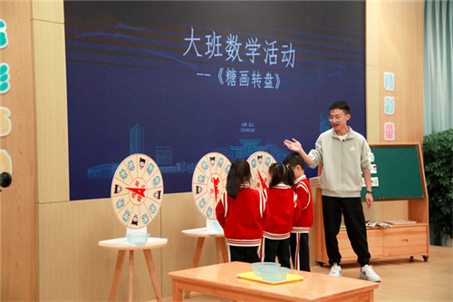 如果说早操是“动起来的思维游戏”,那么二楼多功能厅的集体教学观摩,则是“坐下来的趣味探索”。西财附幼教师鲍文执教的《糖画转盘》活动,巧妙融入成都非遗文化元素,结合幼儿喜爱的动画形象“哪吒”和“敖丙”,创设“糖画转盘”游戏情境,引导幼儿在观察、操作、推理中发现规律、创造规律、应用规律,提升逻辑思维与语言表达能力。