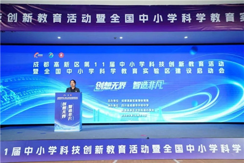 科技赋能教育,创新点亮未来。10月24日,由成都高新区教育体育局主办,成都市中和中学承办的成都高新区第11届中小学科技创新教育活动暨全国中小学科学教育实验区建设启动会在成都市中和中学安和校区举行。活动以“创想无界 智造非凡”为主题,省市区相关部门领导、全区中小学书记(校长)、高新企业骨干、科研专家、科技爱好者及中小学师生近2000人共赴这场科创盛宴。本次活动由成都广播电视台主持人郭怡飞、成都市中和中学高一七班学生杜妮可主持。