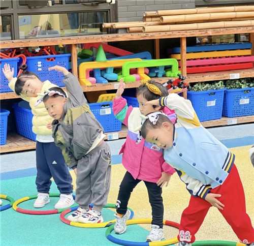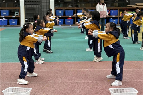中班的孩子们趣味互动,每一个动作都彰显了他们的活力。