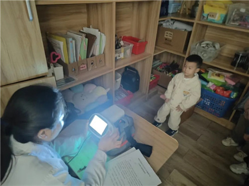 听力采用无创听力检测技术,医护人员在安静环境中为幼儿进行听力排查,排查过程快速且无不适感。针对部分情绪敏感的宝贝,老师通过玩具互动、轻声安抚帮助其顺利完成检测。听力筛查帮助及时发现听力障碍,为孩子们的语言发展和日常交流提供有力保障。
