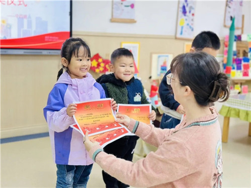 活动尾声,幼儿园、各班级为获奖家庭颁发证书,让亲子在收获荣誉的同时,进一步深化对国家未来发展的憧憬。