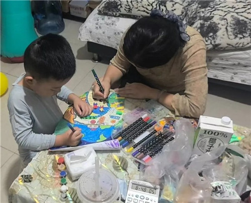 活动启动后,幼儿园发布征集令,家长与幼儿围绕“我心中的2050年中国”主题携手创作。绘画作品中,水彩、蜡笔勾勒出未来智能城市、航天探索的热闹场景;手工作品里,黏土捏制的未来飞船、废旧材料拼搭的绿色家园模型各具特色,累计收到作品两百余件。