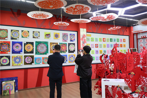 早晨,校长团在成都市二仙桥学校党委书记李良明等领导的陪同下,走进学校独具特色的剪纸博物馆。馆内陈列着由学生创作的各类剪纸作品,既有传统民俗题材的再现,也有与现代美育、学科融合的创新表达。校长们驻足细观,频频拍照记录,对学校将非遗文化融入课程体系、通过“以剪育人”实现美育与劳动教育融合的实践表示高度赞赏。有校长表示,这种将传统文化与现代教育理念有机结合的方式,为学校特色发展提供了可借鉴的路径。