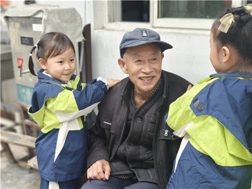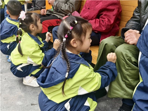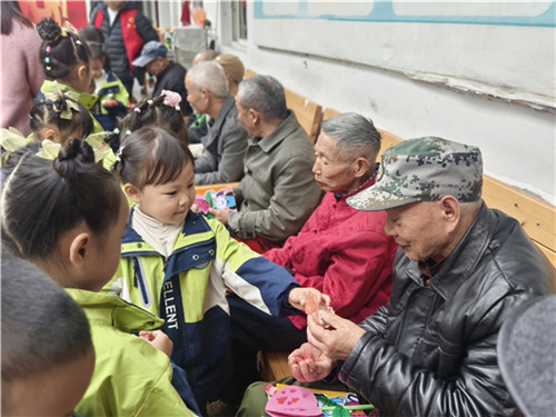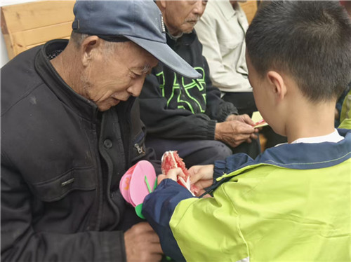 孩子们踮起脚尖、躬身认真的模样格外动人,他们为长辈轻轻捶背、揉肩,轻声念出“福寿绵长”的祝福。一句句稚嫩的问候,让长辈们眉梢的笑意愈发真切。