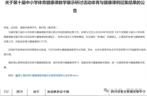 孙军老师课例获评第十届中小学体育与健康课教学展示研讨活动全国示范课