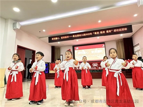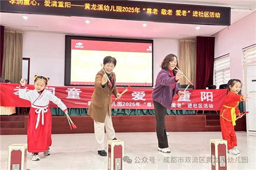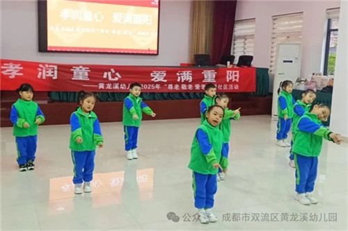 金风送爽,又逢重阳。为弘扬中华民族尊老、敬老、爱老的传统美德,让孝亲文化在孩子们心中生根发芽,2025年10月29日,成都市双流区黄龙溪幼儿园中大班的孩子们在老师的带领下一起走进嘉禾社区,用最纯真的方式,为社区的爷爷奶奶们送上了一份特别的节日祝福。