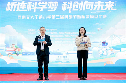 金秋十月,科学的热浪席卷校园。10月30日上午,西南交通大学子弟小学的操场上一片欢腾。在机器人军团酷炫的表演与啦啦操队员活力的舞姿中,以“桥连科学梦 科创向未来”为主题的第三届科创节暨桥梁模型比赛正式拉开帷幕。从神奇的磁悬浮汽车演示到紧张的桥梁承重比赛,再到精彩的人工智能对决……一系列科创活动迸发出智慧的火花,一场融合奇思妙想与科学实践的盛宴就此开启,师生、嘉宾齐聚一堂,共同见证了科创少年的无限潜力与未来之光。