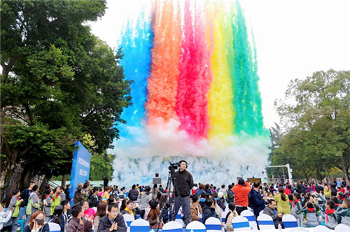 各单位领导代表、裁判组评审团代表上台合影,在刘长军宣布科创节正式开幕后,礼炮齐鸣,彩烟腾空而起,西南交通大学“扬华号”方程式赛车惊艳亮相,瞬间点燃了全场的激情。为期一天的桥梁承重比赛、人工智能对决等精彩科创活动正式拉开战幕!