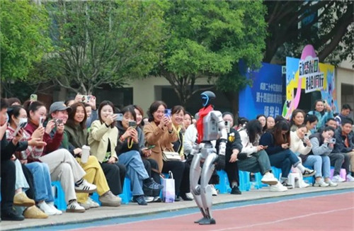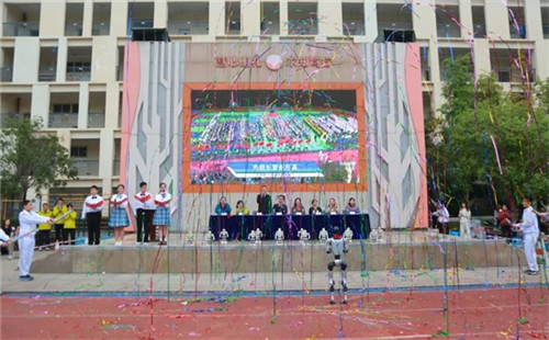 当副校长李先勇宣布“成都市第二十中学校花照校区第十四届体育科技节正式开幕”时,礼炮齐鸣、彩带飞扬,彩旗队在跑道上尽情奔跑,机器人方阵舞动未来韵律,现场气氛被推向高潮。