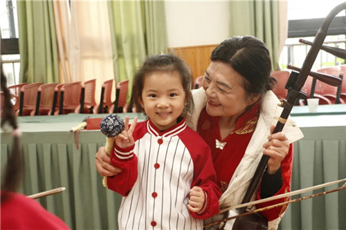 幼儿园邀请了一群特别的爷爷奶奶,他们是青白江区文化馆民乐团的36位演奏家。《花好月圆》《小星星》《歌唱祖国》,从致敬经典的金曲到点燃童真的互动旋律,再到凝聚家国情怀、幼儿童真的全场合唱,每一段乐章都是文化传承的纽带,承载着节日的温情,孩子和长辈沉浸式感受着民族音乐的魅力与传统文化的力量。