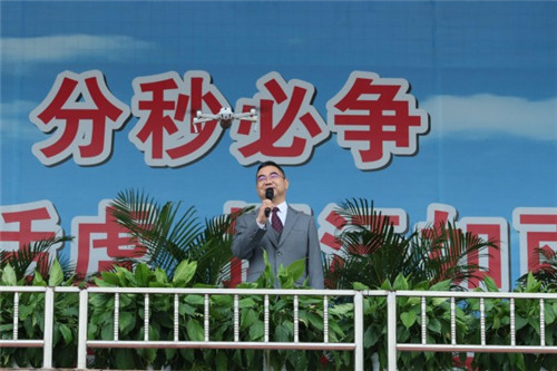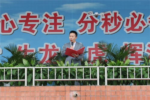 庄严的升旗仪式后,姜明贤校长为体育节致辞。他指出,体育是民族复兴的重要支撑,也是学校突围创新的重要载体。学校始终践行“三全育人、五育并举”的教育思想,将体育精神培育融入教育全过程。姜校长勉励同学们以强健体魄筑牢青春根基,以拼搏精神应对成长挑战,以家国情怀扛起时代责任。