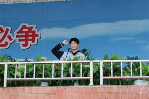 在宣誓环节,裁判员代表刘埔江老师、运动员代表何昕远同学分别宣誓,承诺公正裁判、奋勇拼搏。校团委副书记庞泽亿同学带领全体三原学子宣誓:“以青春之我,勇担时代之责;以强健之体魄,筑伟大强国之梦想!”