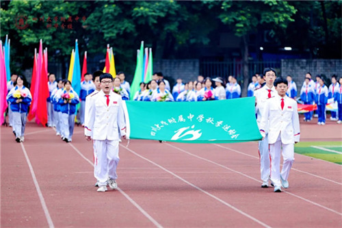 上午8:30,伴随着激昂的《运动员进行曲》,国旗队、校旗队、会徽队、鲜花队、彩旗队依次入场。他们步伐铿锵、精神抖擞,展现了附中学子的昂扬风貌与青春风采。