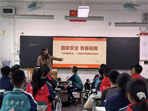 在反间谍法宣传教育日来临之际,四川省成都市新都四中围绕“维护国家安全”这一核心主题,通过国旗下的思政课、日常课堂教学、主题班会等多元形式,在全校范围内深入开展国家安全教育活动,旨在提升师生的国家安全意识,筑牢校园安全防线。
