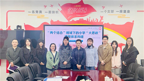 为深入贯彻落实“两个结合”重要论述,推动小学思政教育体系化、特色化发展,2025年10月24日,成都市锦江区东华小学成功举行成都大中小学思想政治工作研究基地党建研究专项课题——《“两个结合”视域下的小学“大思政”课程体系构建》开题报告会。会议特邀成都大学马克思主义学院副院长樊英杰、成都市教育科学研究院党建教研员贾巧枝到场指导,学校课题组全体成员、全体党员教师参与研讨。