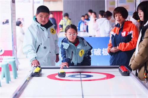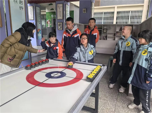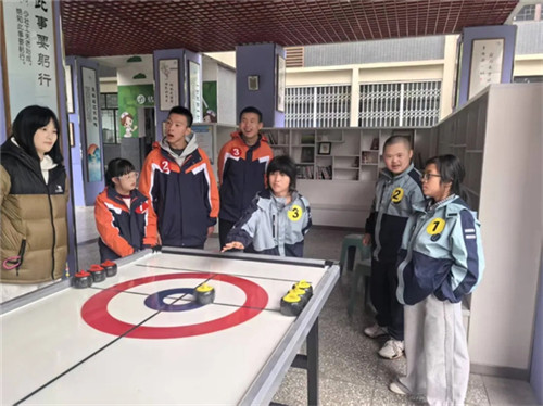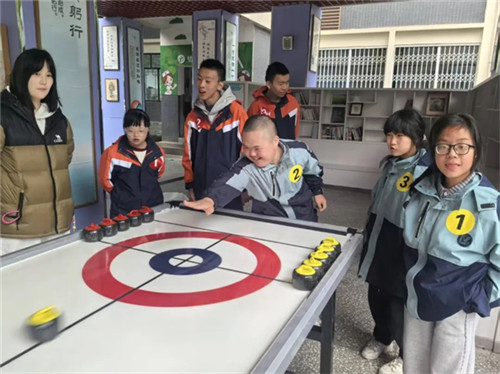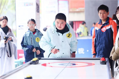 该校3名队员参加了混双桌面冰壶项目。赛场上,3名参赛选手全神贯注,每次推壶都经过自己的思考与队员的战术指挥,取得混双桌面冰壶A组三等奖,用实力展示出自己的风采。