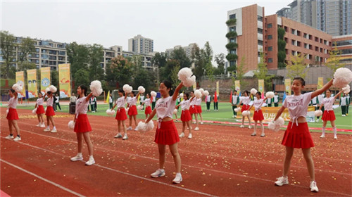 随后,易俊副书记宣布运动会开幕,“小杏运”们的啦啦操展示《出彩人生》精彩飞扬。