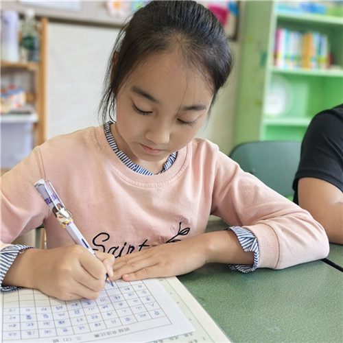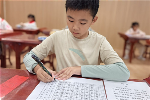 决赛现场,小选手们坐姿端正、神情专注,手握笔墨浸润经典。从二年级稚嫩工整的古诗,到六年级沉稳流畅的文言名篇,《静夜思》《三字经》《论语》等经典篇目在笔尖流淌。孩子们屏息凝神,起笔、行笔、收笔间尽显认真,一笔一划不仅书写着汉字的方正之美,更传递着对传统文化的敬畏与热爱。