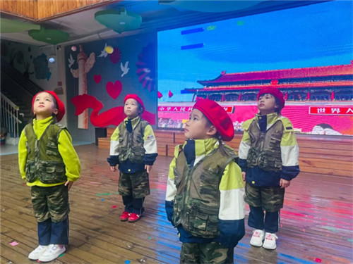 伴随着雄壮的《义勇军进行曲》,鲜艳的五星红旗冉冉升起。全体师幼肃立行注目礼,爱国情怀与安全责任在这一刻实现同频共振。