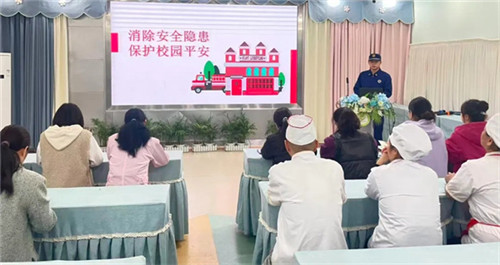 除了面向幼儿的有趣真实的消防安全教育活动,幼儿园还专门组织全体教师开展消防安全专项培训,确保每一位教职工都成为“安全守护者”。培训中,消防员结合幼儿园场景,重点讲解了“消防设施实操、应急疏散要点、日常隐患排查”3类关键内容,列举幼儿园常见消防安全隐患,如电器线路老化、玩具堵塞安全出口、消毒用品违规存放,指导教师如何每日自查、每周互查,从源头杜绝安全风险。