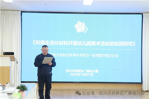为深化幼儿园美育课程建设,以科研赋能教育实践创新,推动幼儿审美素养与全面发展,近日,四川天府新区广都幼儿园开展了《利用生活化材料开展幼儿园美术活动的实践研究》开题论证会,开启了一场理论与实践交融的学术交流碰撞。