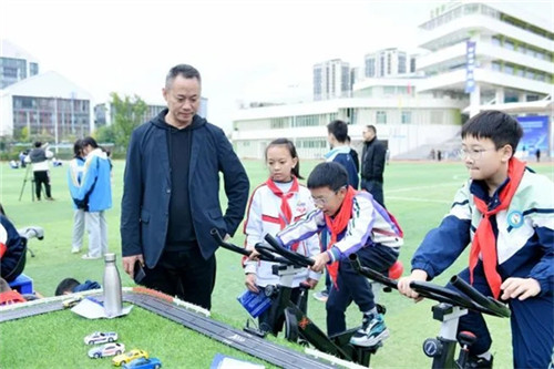 在成果展示区,庆安小学围绕活动主题精心设计并搭建展位。STEM工程技术作品展示、VR小车互动体验、创新发明作品展示、科技与体育结合的发电四驱车互动体验等板块有序呈现,吸引众多师生驻足交流,充分体现了庆安小学近年来在科创教育方面取得的初步成果。