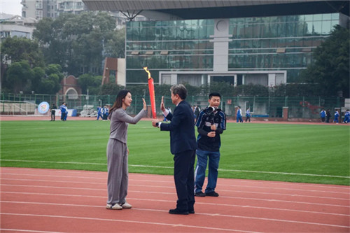 本届运动会火炬传递以“荣耀圣火,光辉传承”为主题,别具特色。体育组刘兴宇老师运用野外生存技能,以镁棒摩擦点燃火种,寓意“直面挑战、突破极限”的体育精神。