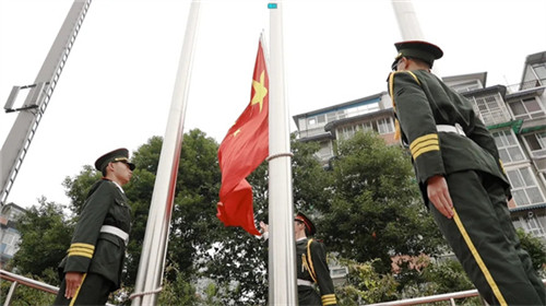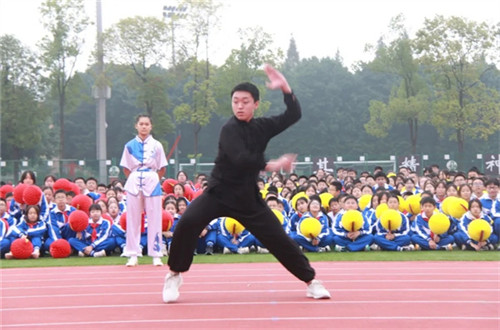 “升国旗,奏唱国歌,敬礼!”一声令下,雄壮的《义勇军进行曲》响彻校园。鲜艳的五星红旗在全体师生的注视下冉冉升起,迎风飘扬。全校师生共同唱响中华人民共和国国歌,这一刻,爱国情怀在心中激荡,体育精神与民族自豪感交相辉映。