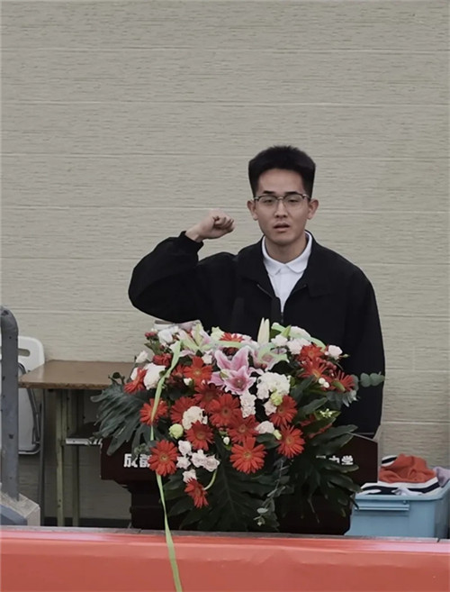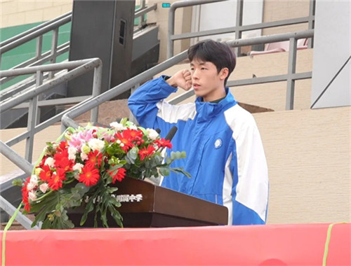 随后,裁判员代表何毅老师宣誓。2025年全国中学生田径冠军赛男子U20组跳高全国冠军、国家一级运动员周嘉莱同学作为运动员代表宣誓,承诺恪守体育道德,遵守竞赛规则,确保运动会公平、公正进行。